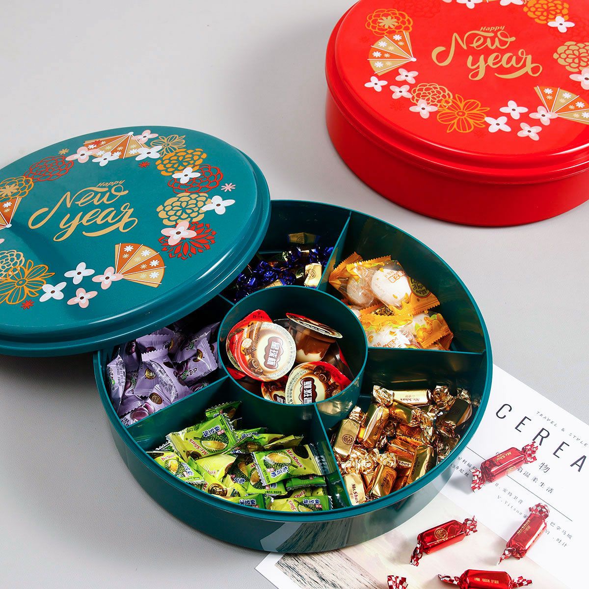 六格圓型糖果盒 (紅/綠)
