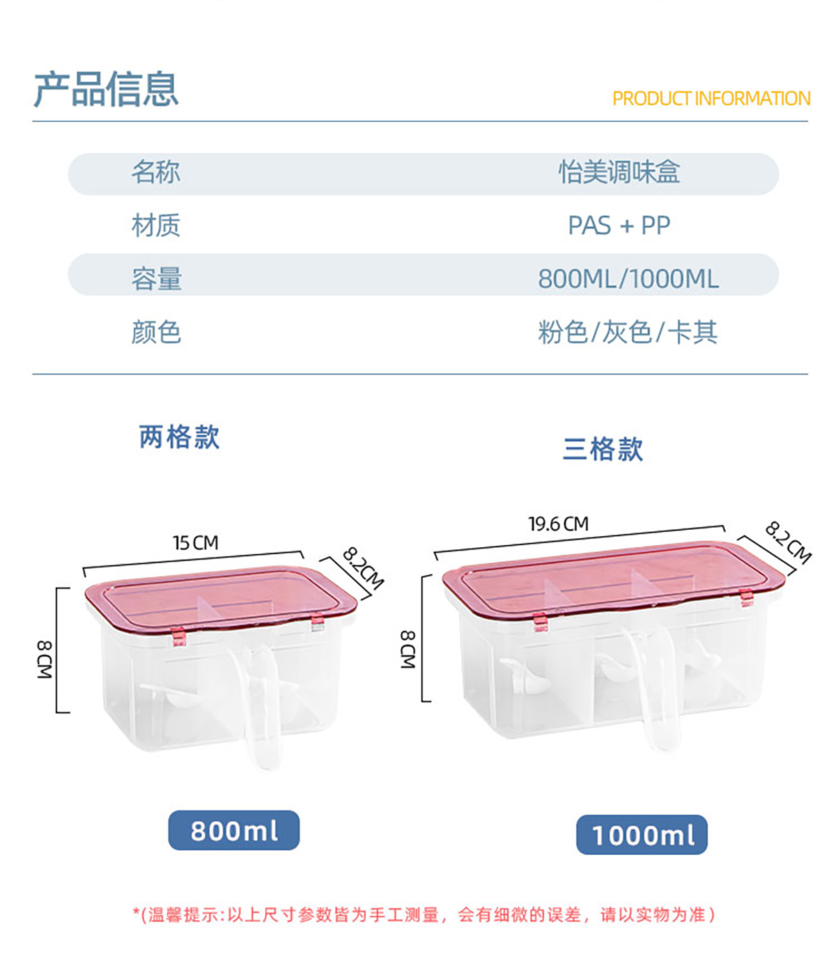 Size: CC-R3032(兩格):150*82*80mm/800ml CC-R3060(三格):196*82*80mm/1000ml