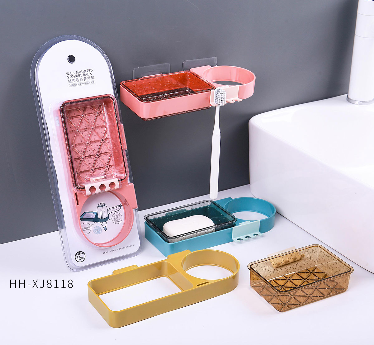 晶透壁掛皂盒收納架/多用架/(簡(jiǎn)裝)