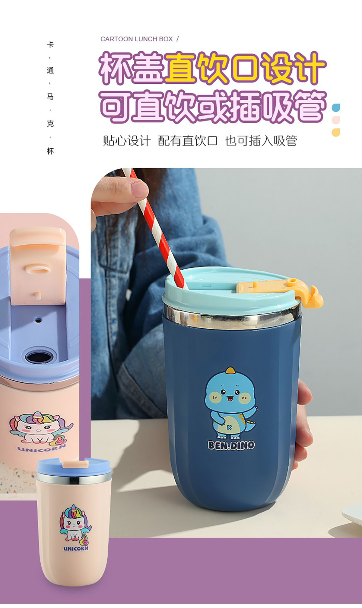 500ml萌趣304不銹鋼翻扣保溫杯
