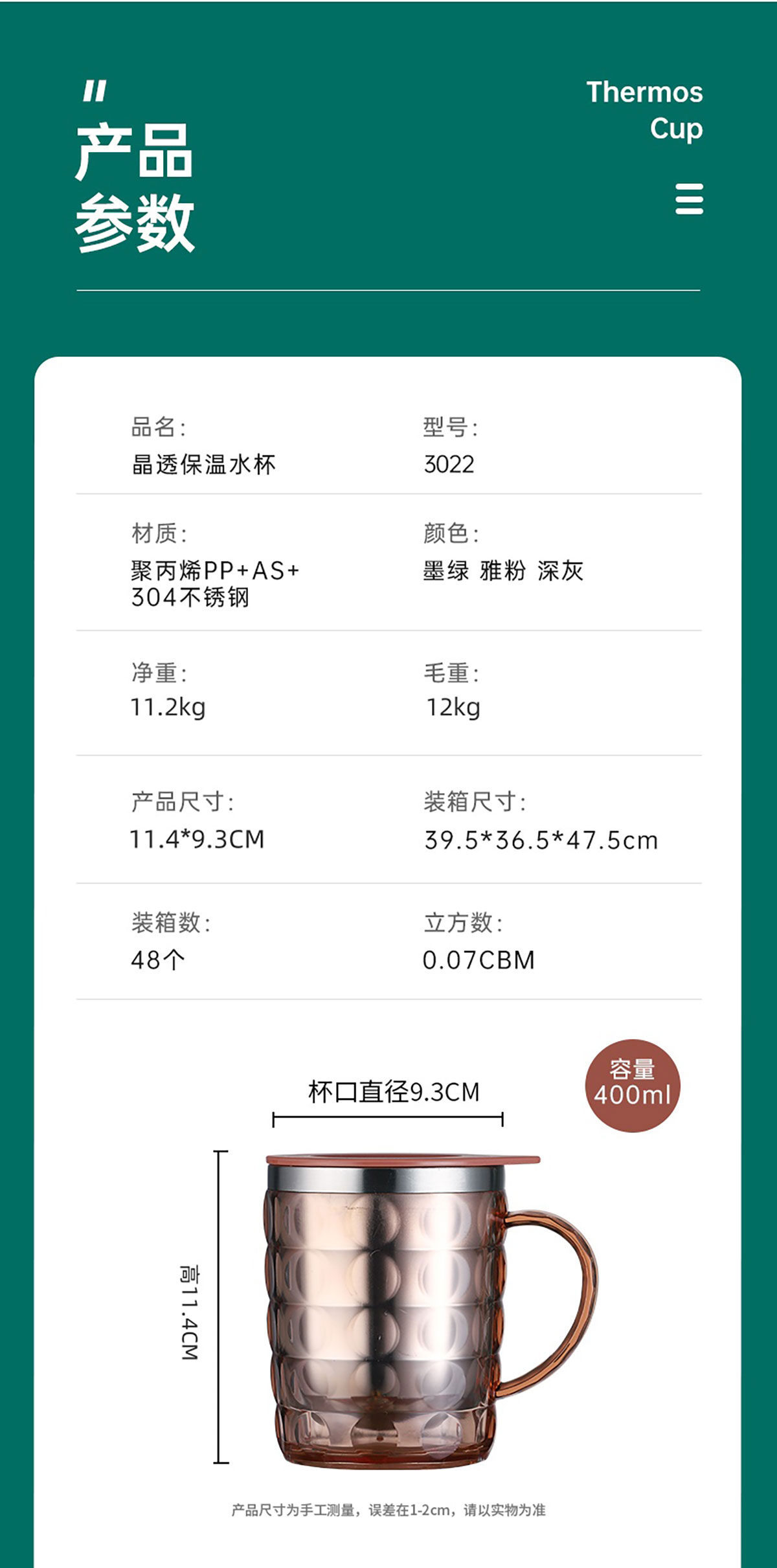 400ml圓點晶透保溫水杯