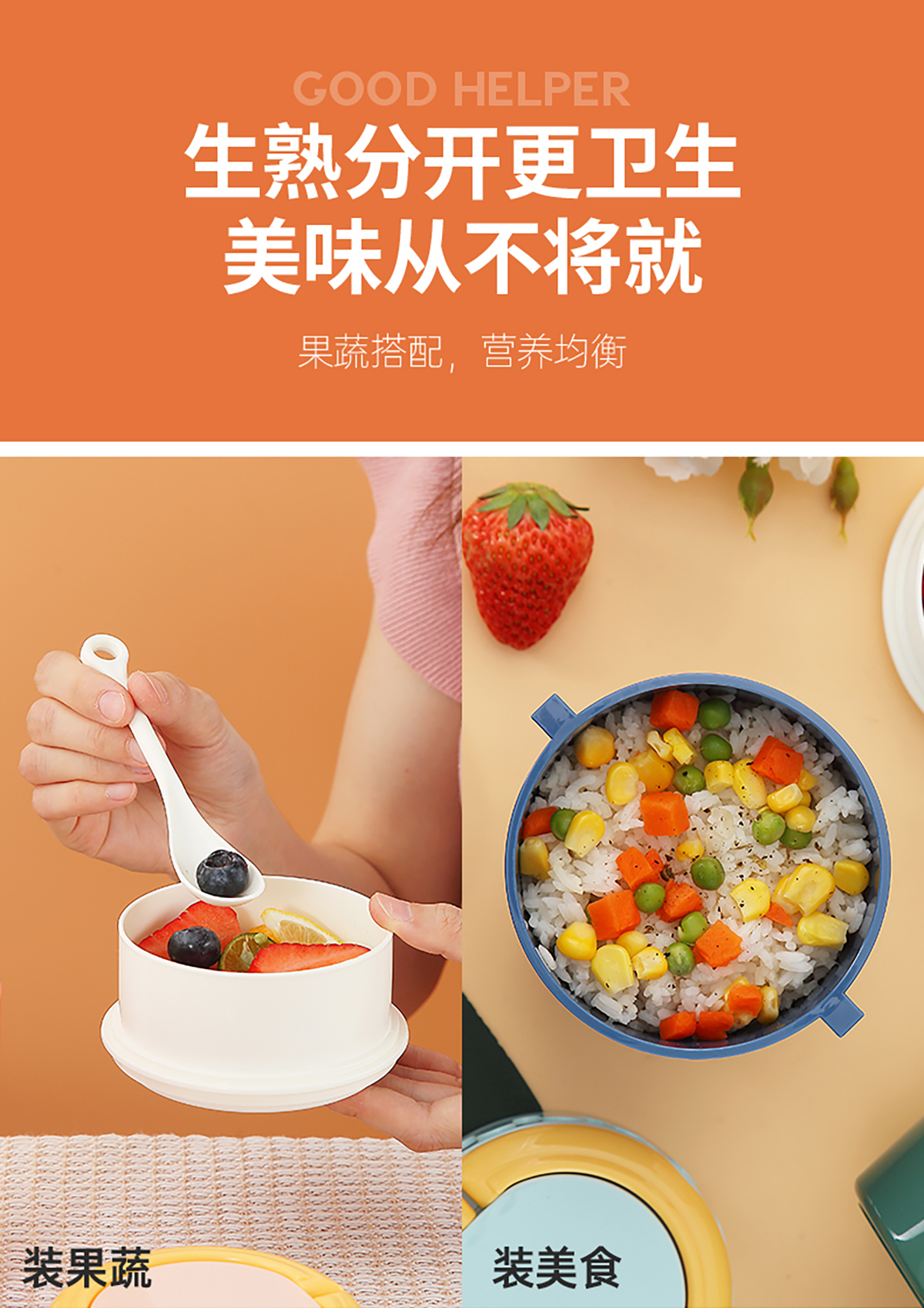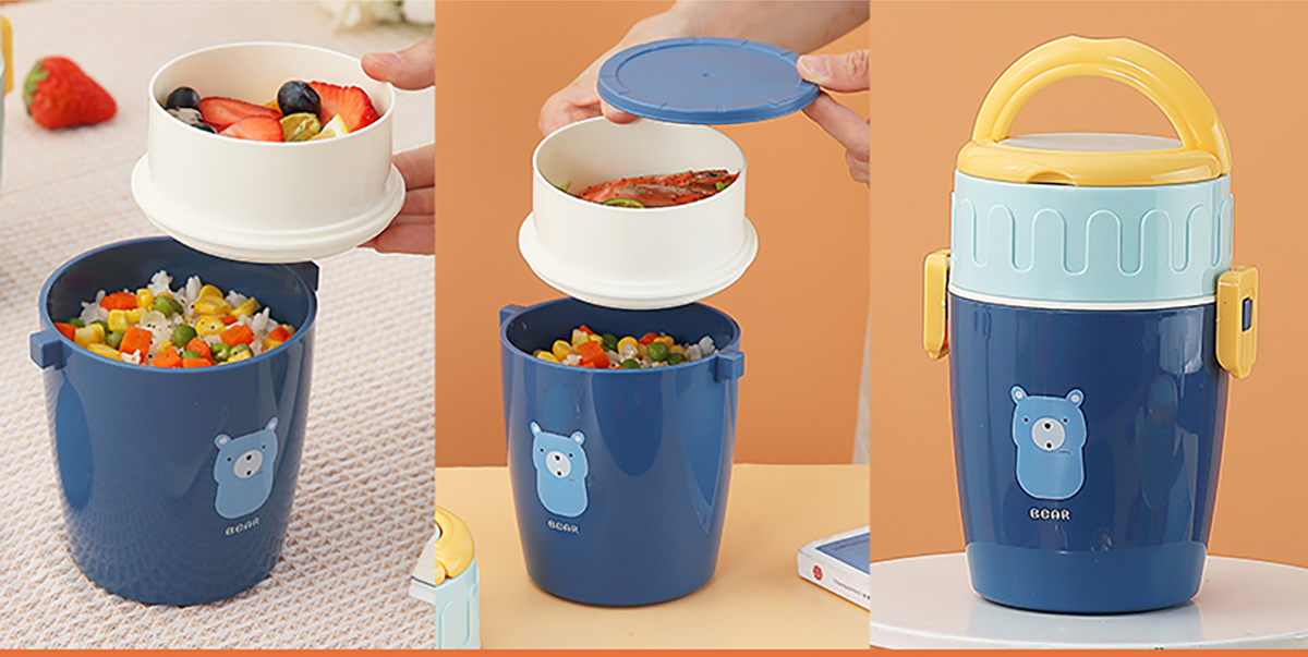 呆萌卡通雙層餐盒(圓錐形)850ml