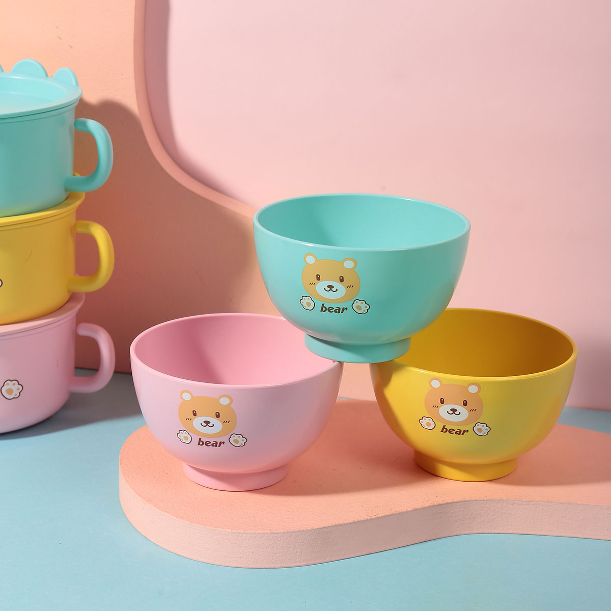 Size: HH-XJ8253:碗(含蓋)160*125*80mm/杯110*83*93mm 350ml/勺子筷子15mm
