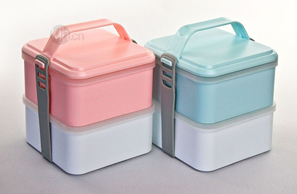 正方形帶提手雙層飯盒