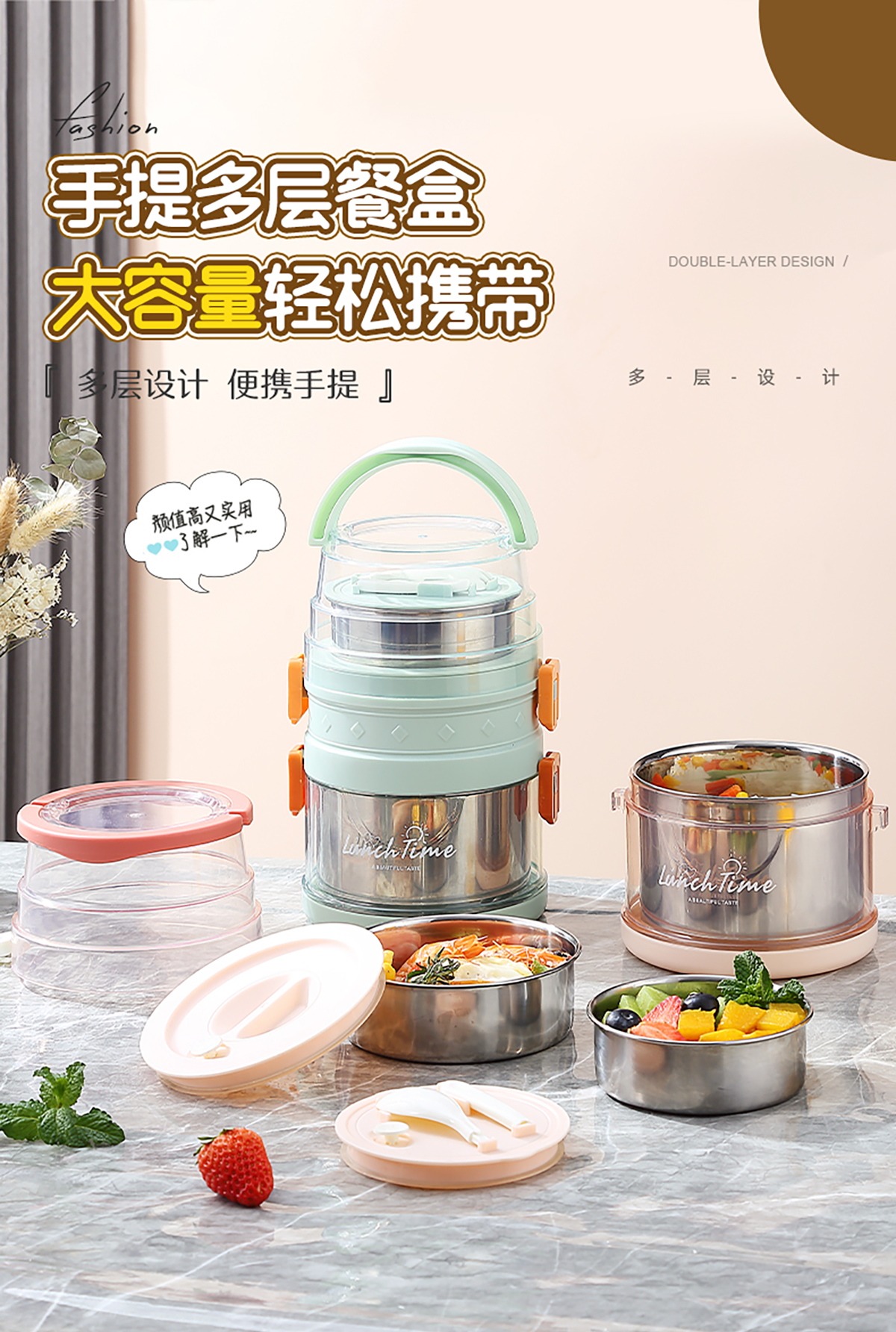 欣悅1.5L/2.1L不銹鋼手提雙層餐盒 2023年新色