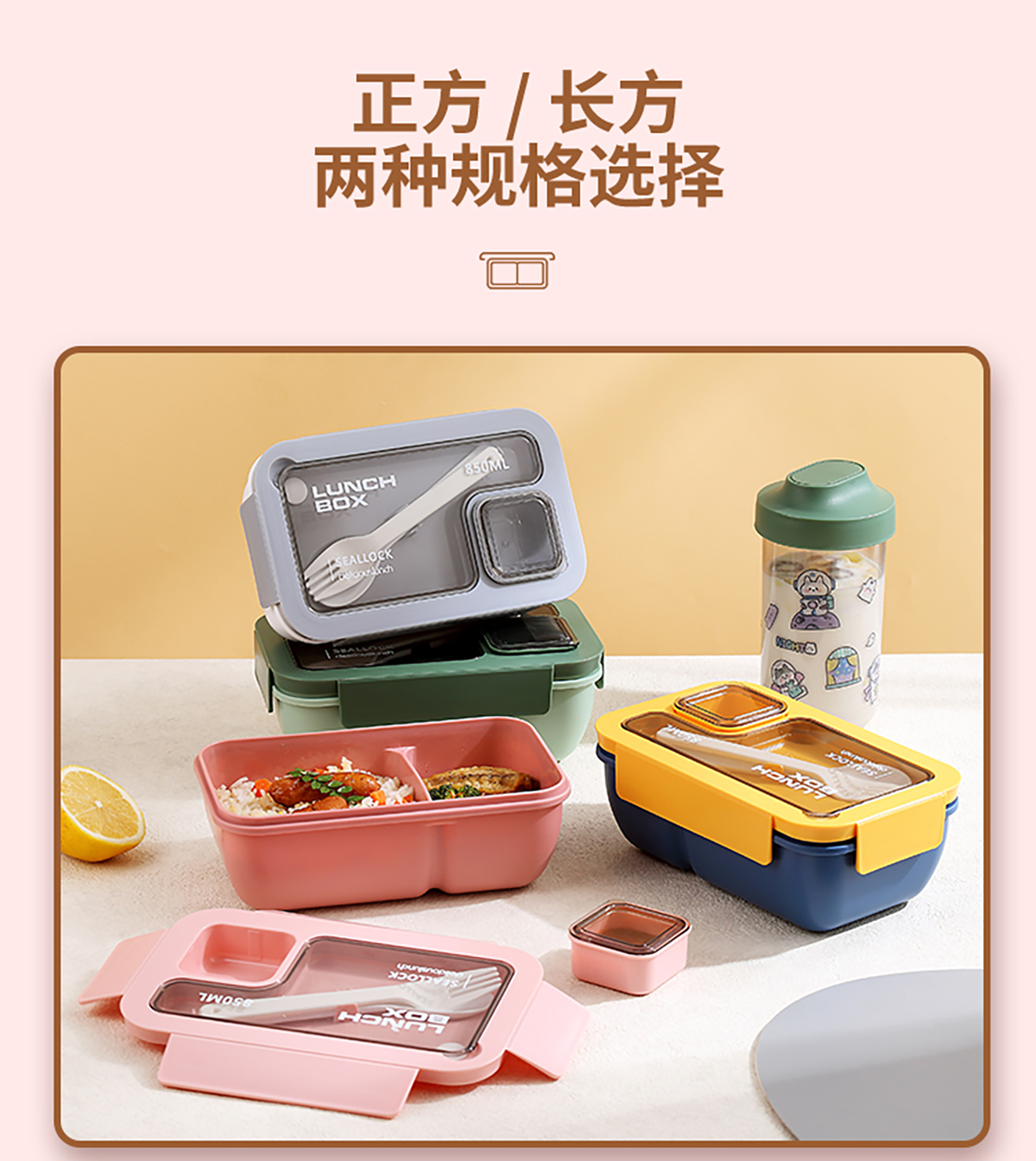 星樂輕食便當盒套裝(長方形850ml/正方形1100ml+水杯500ml)