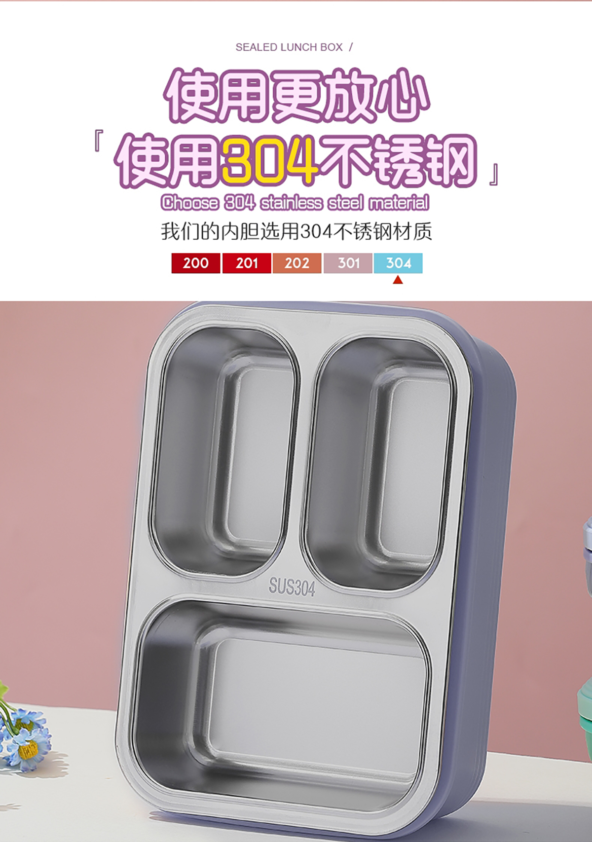 3格不串味不銹鋼餐盒620ml
