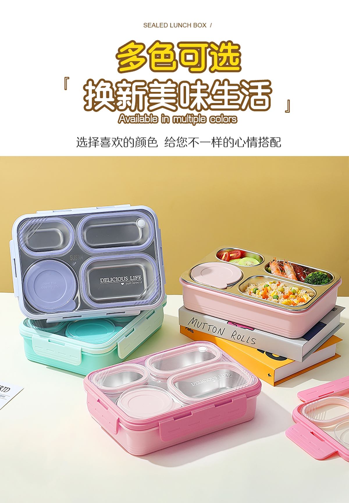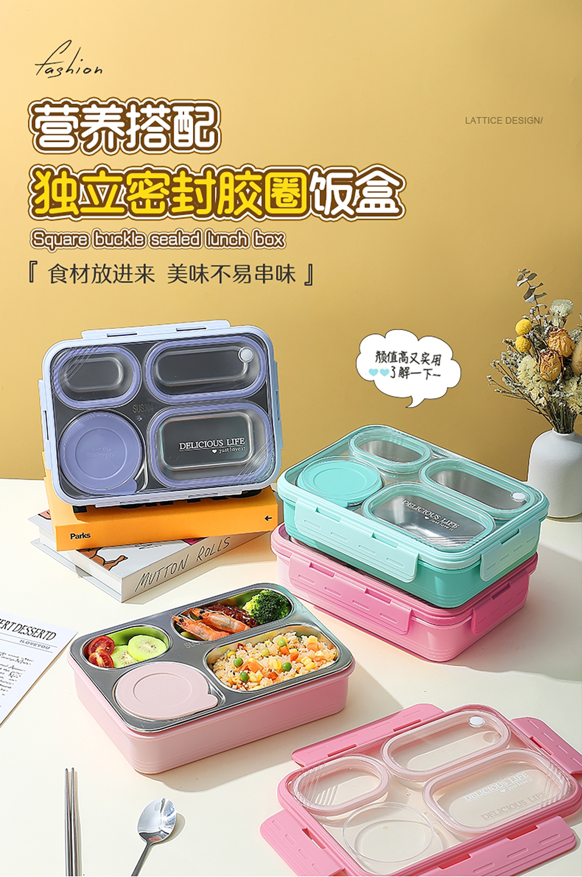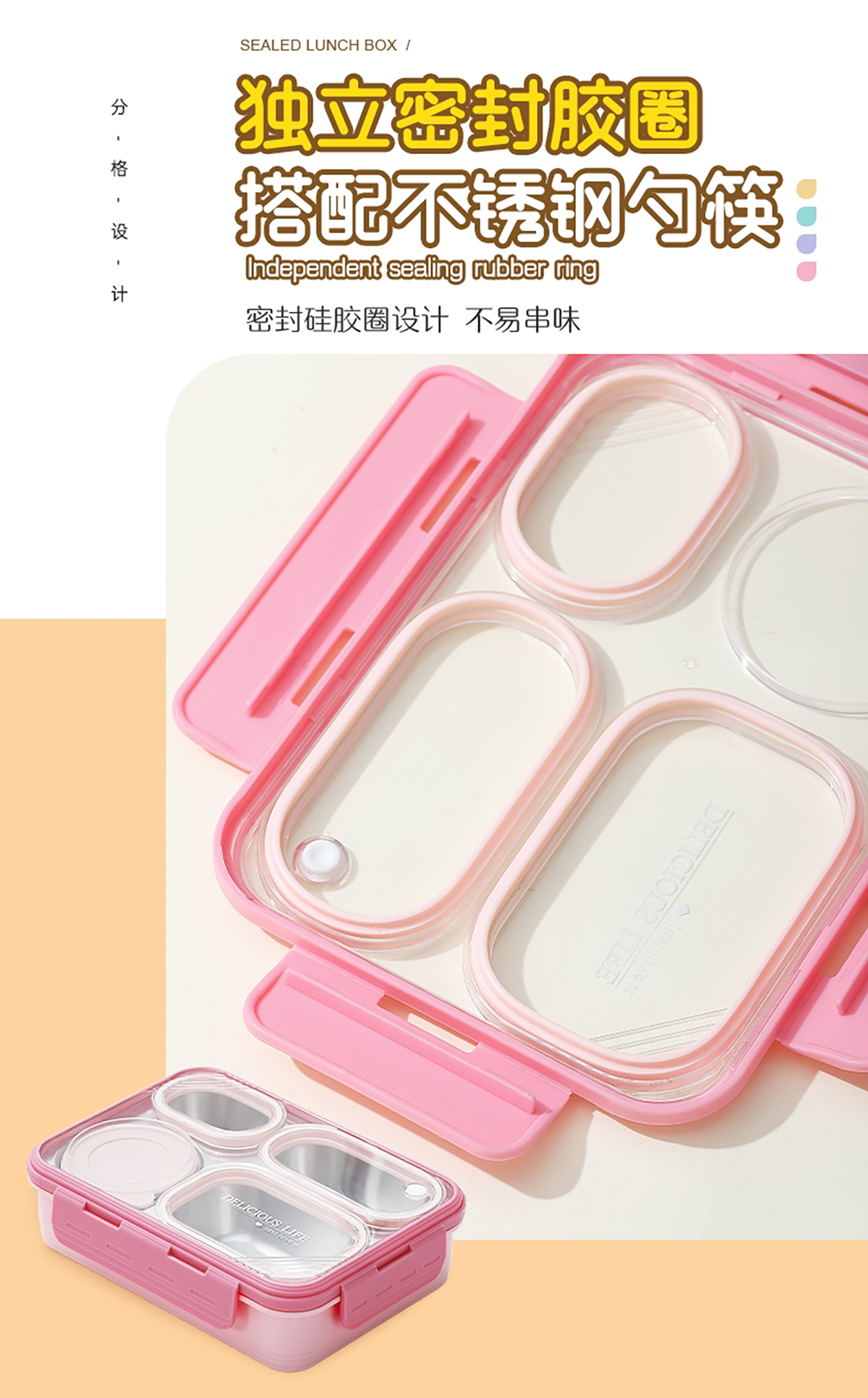 中號(hào)4格不串味不銹鋼餐盒帶碗800ml+150ml碗