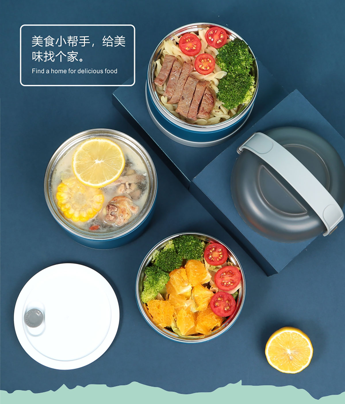 碗蓋式保溫不銹鋼飯盒雙層1250ml