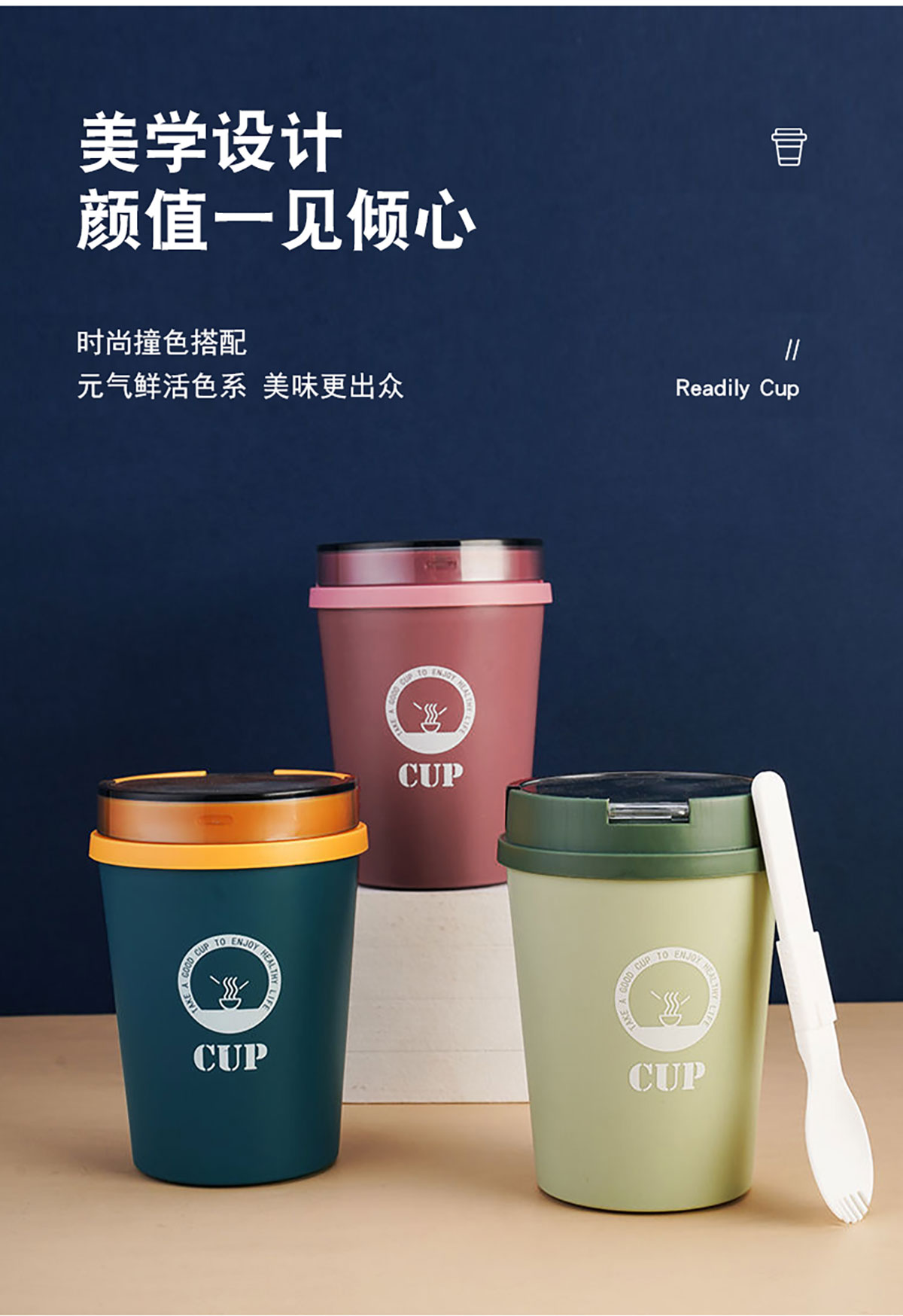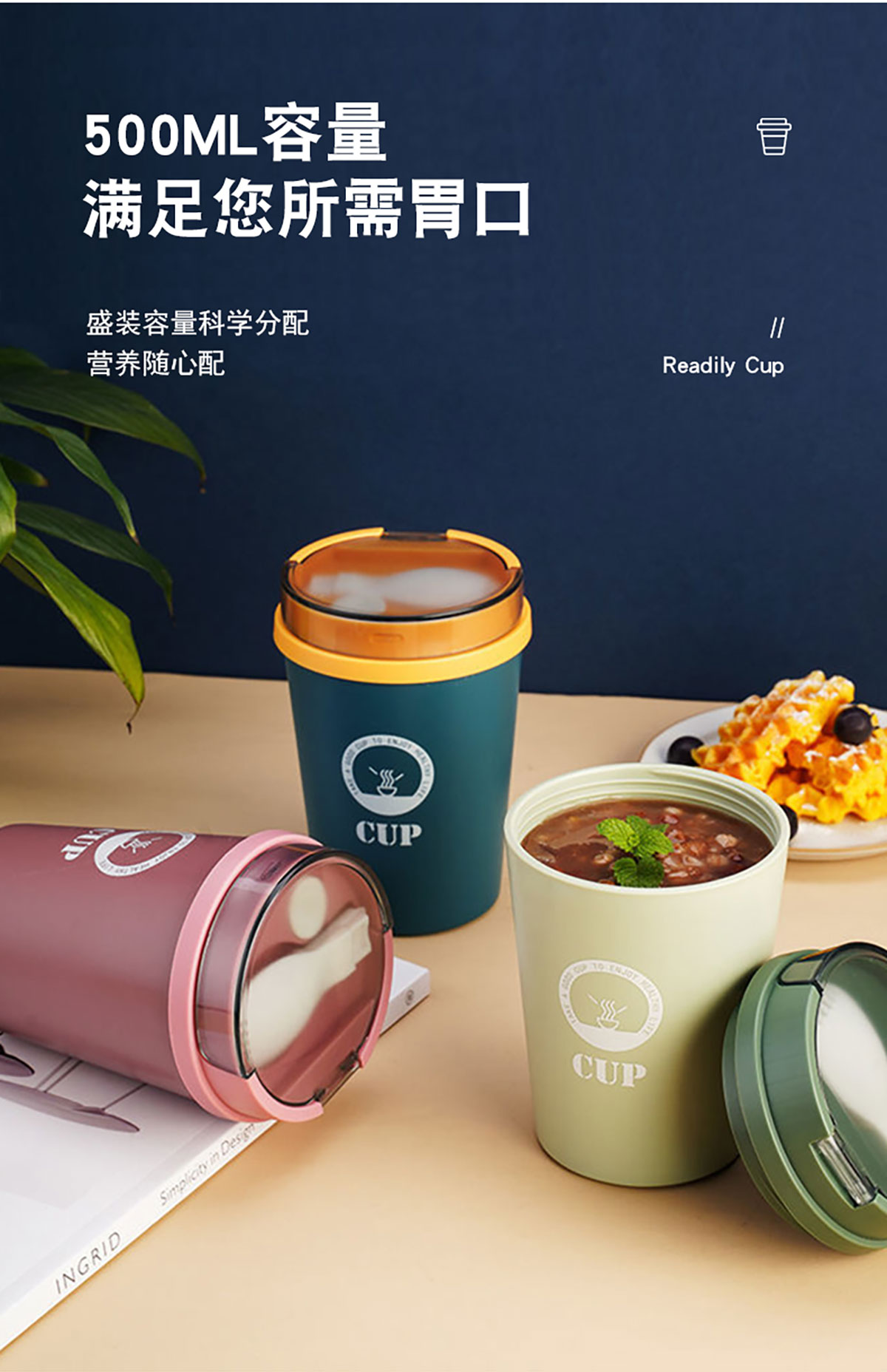 莫蘭迪帶勺早餐杯500ml