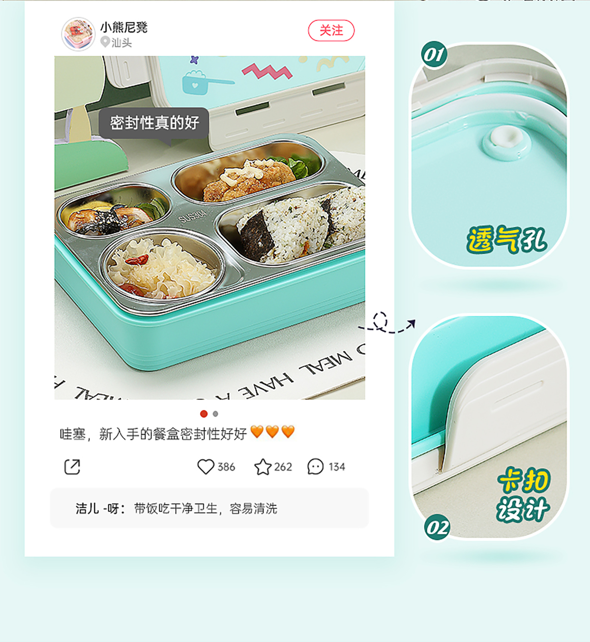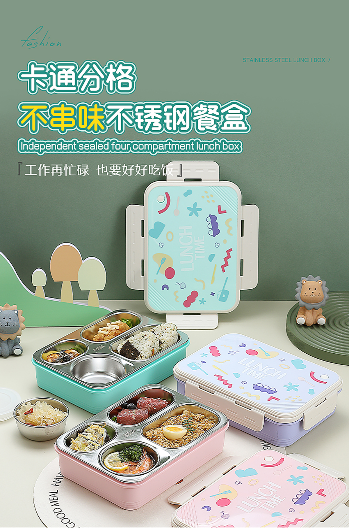 分格不串味飯盒(四格800ml)+碗150ml