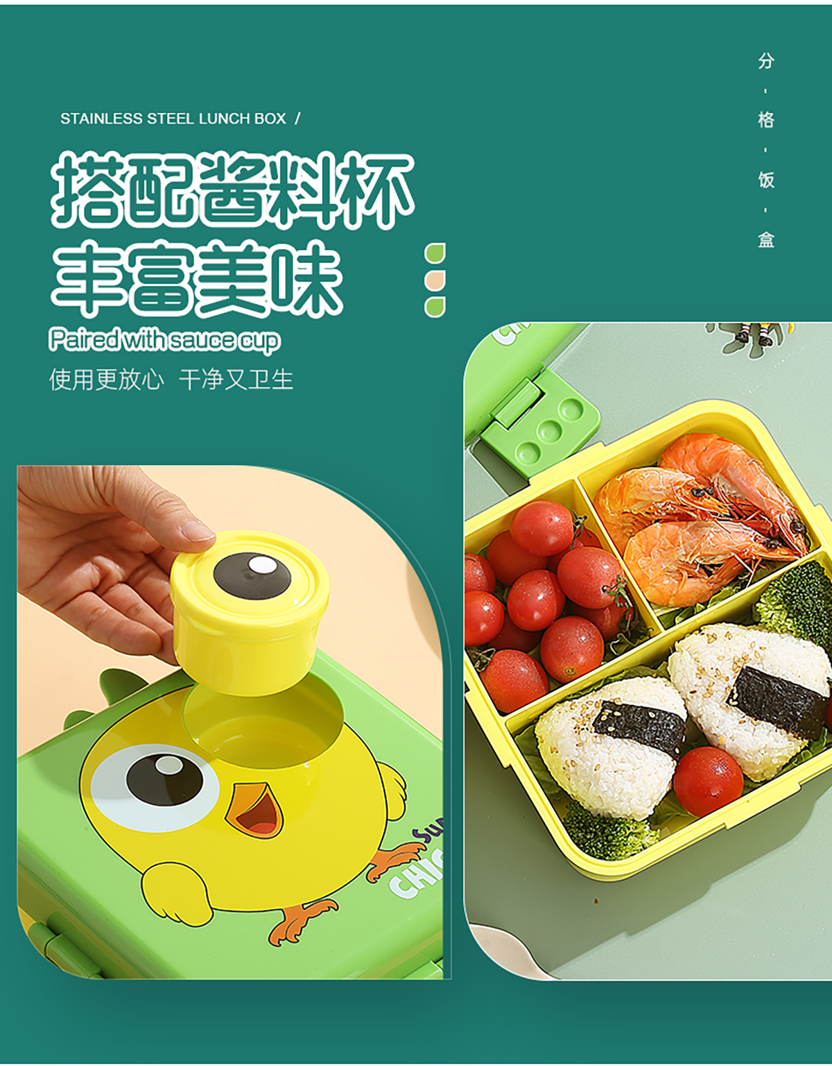 小雞正方形飯盒(塑料)1590ml+70ml