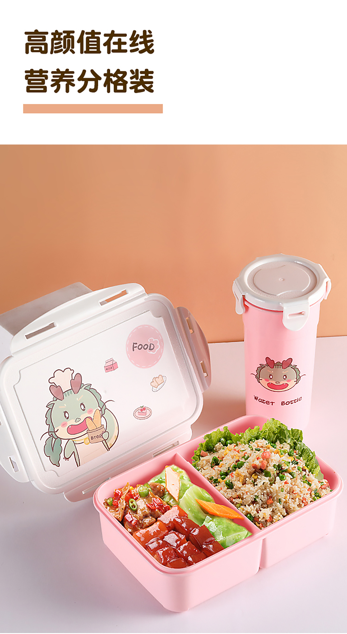 XL-R2249(套裝):飯盒:205*145*65mm/1000ml 水壺:170*80mm/480ml
