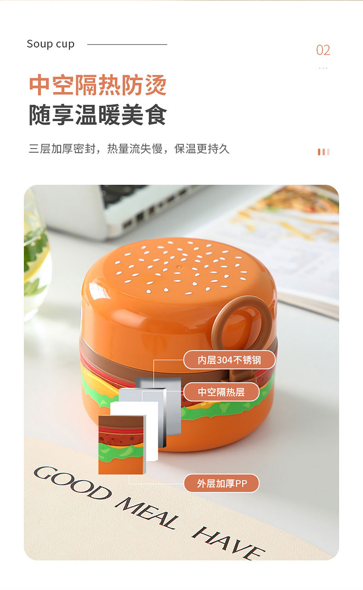 創(chuàng)意漢堡輕食碗矮款350ml/650ml(PP款/不銹鋼款)
