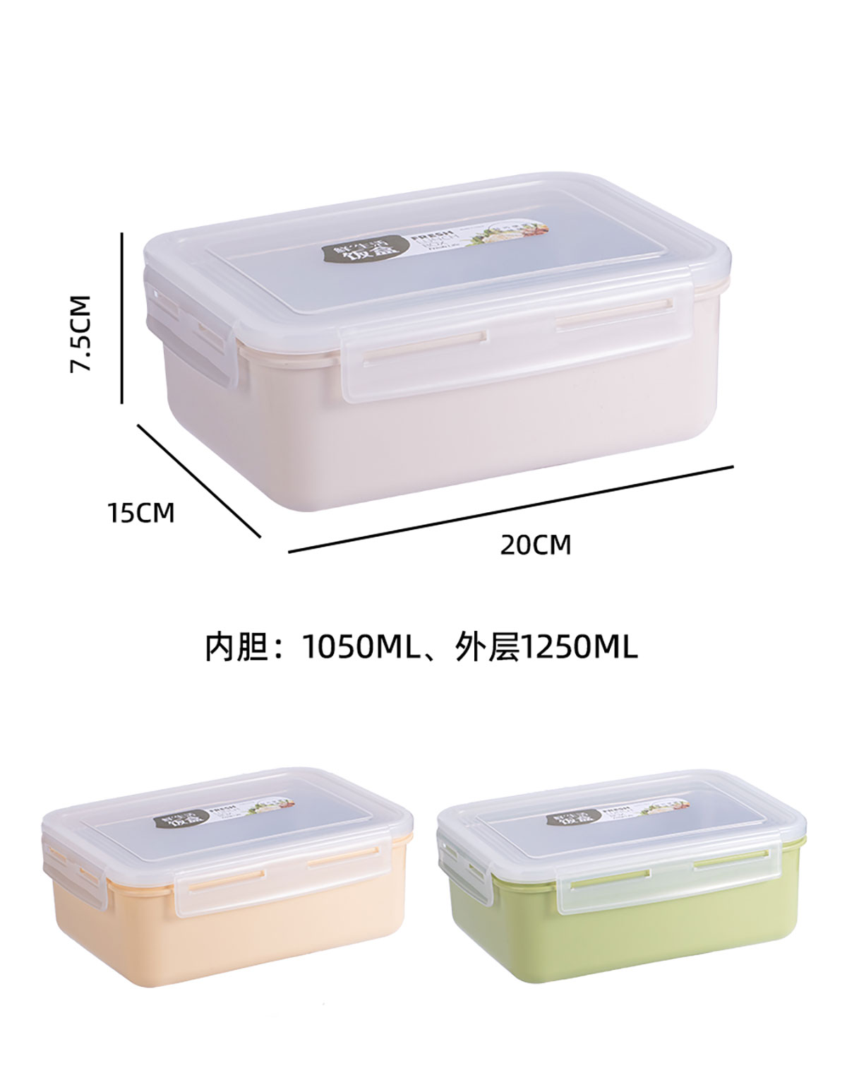 Size: 200*150*75mm/外層:1250ml 內(nèi)膽:1050ml