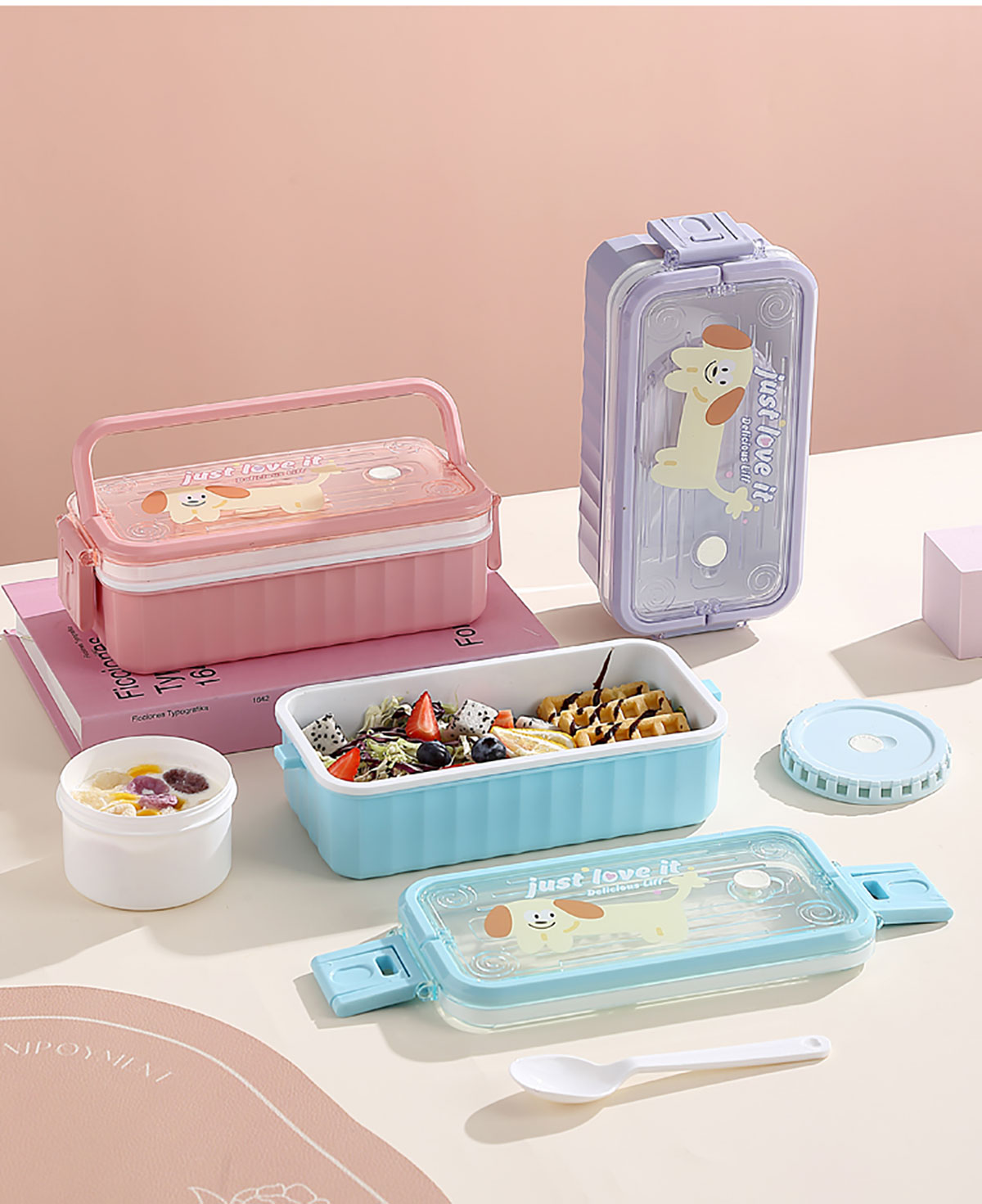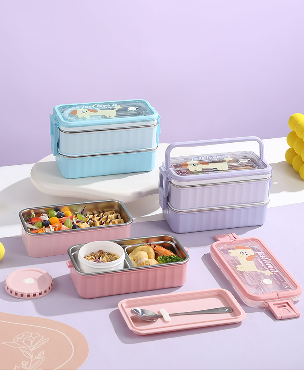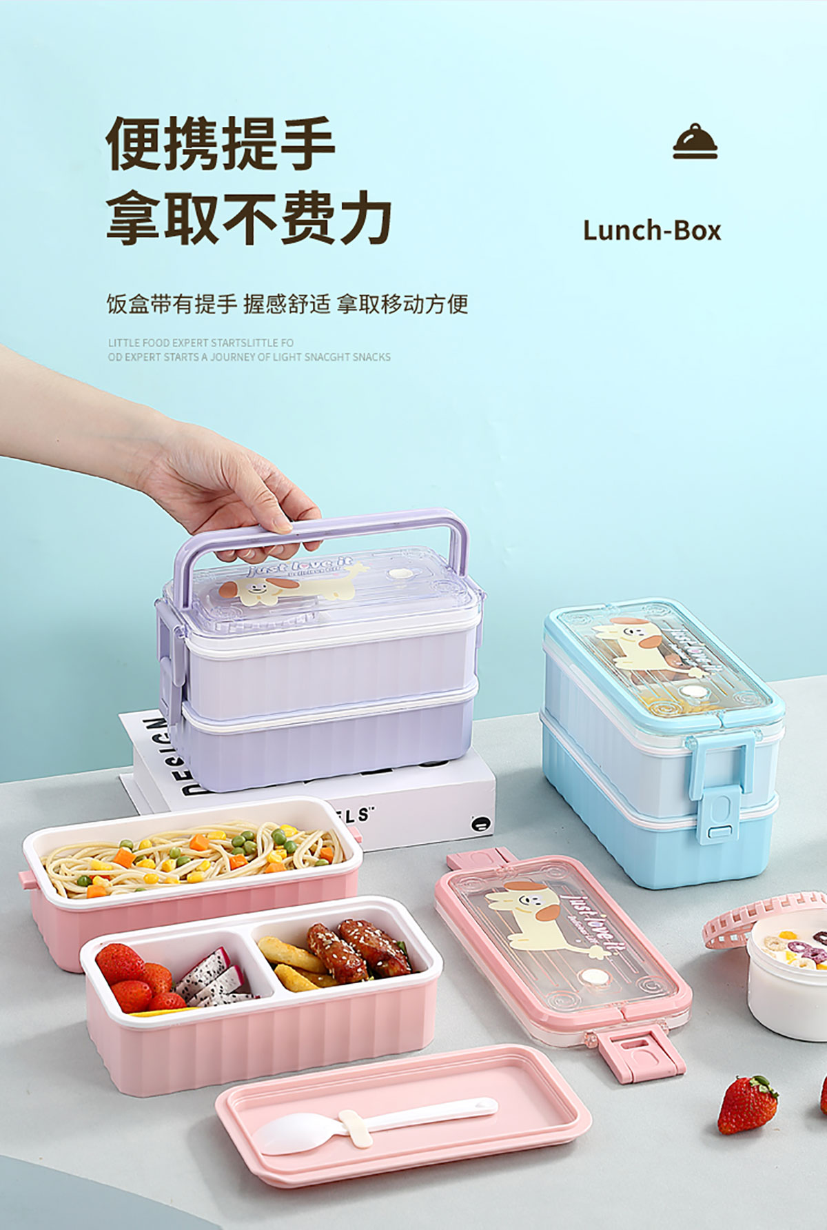 卡通手提單層/雙層餐盒帶碗 塑料/不銹鋼
