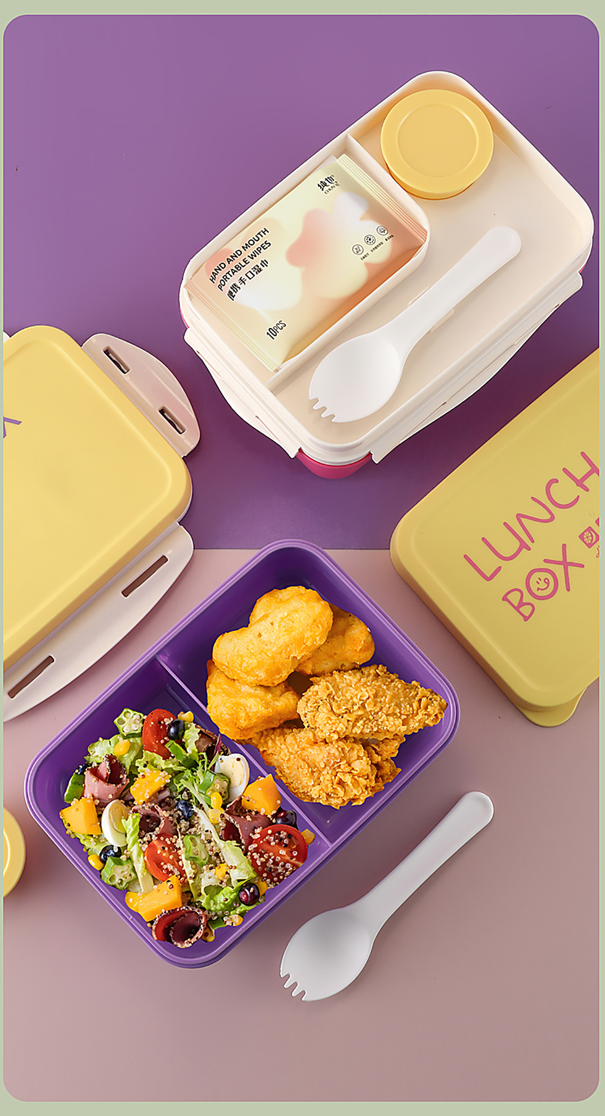 Size: 飯盒:210*150*83mm/1000ml 醬料盒:58*25mm/35ml 叉子:38*42mm