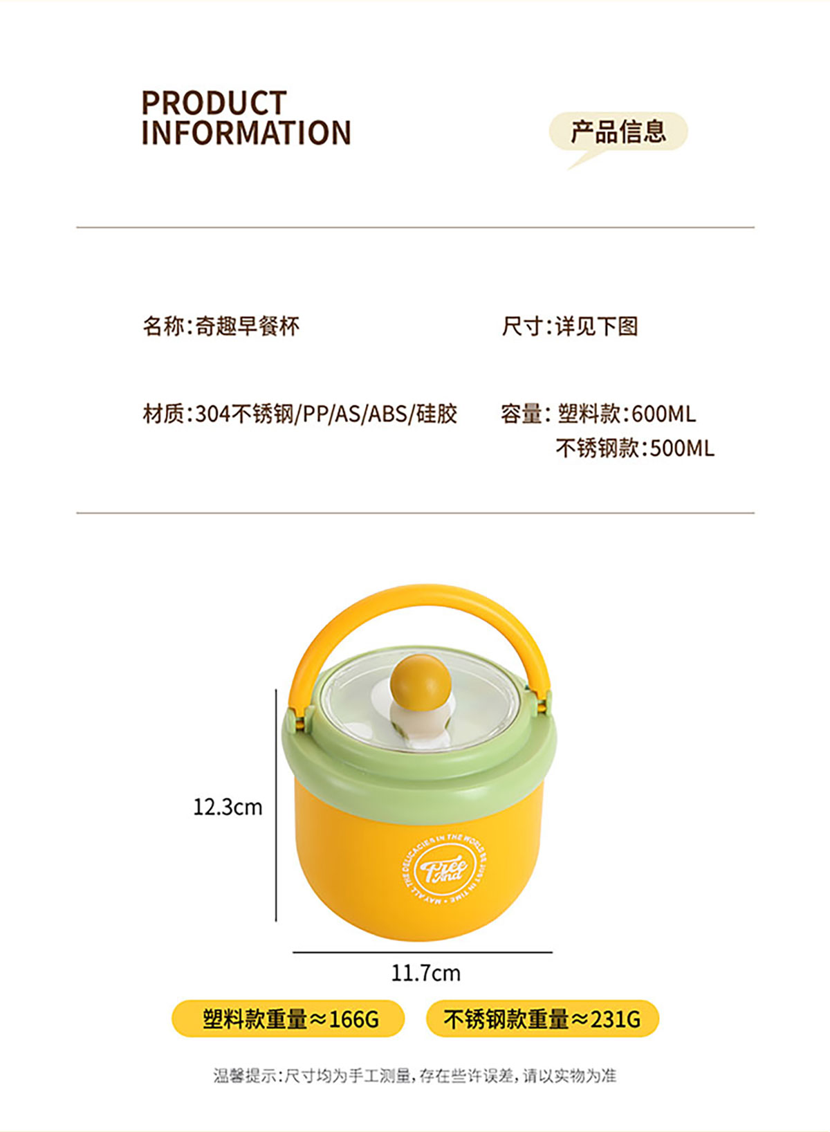 奇趣早餐杯  PP款600ml/不銹鋼款500ml
