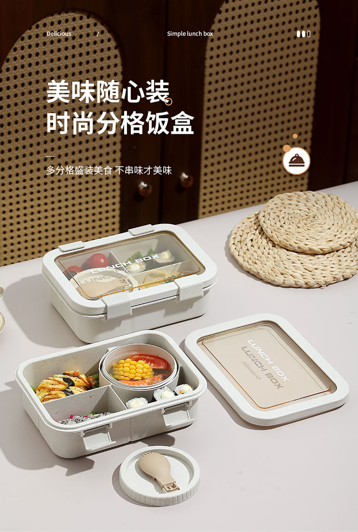 小麥款分格飯盒1250ml/湯碗250ml