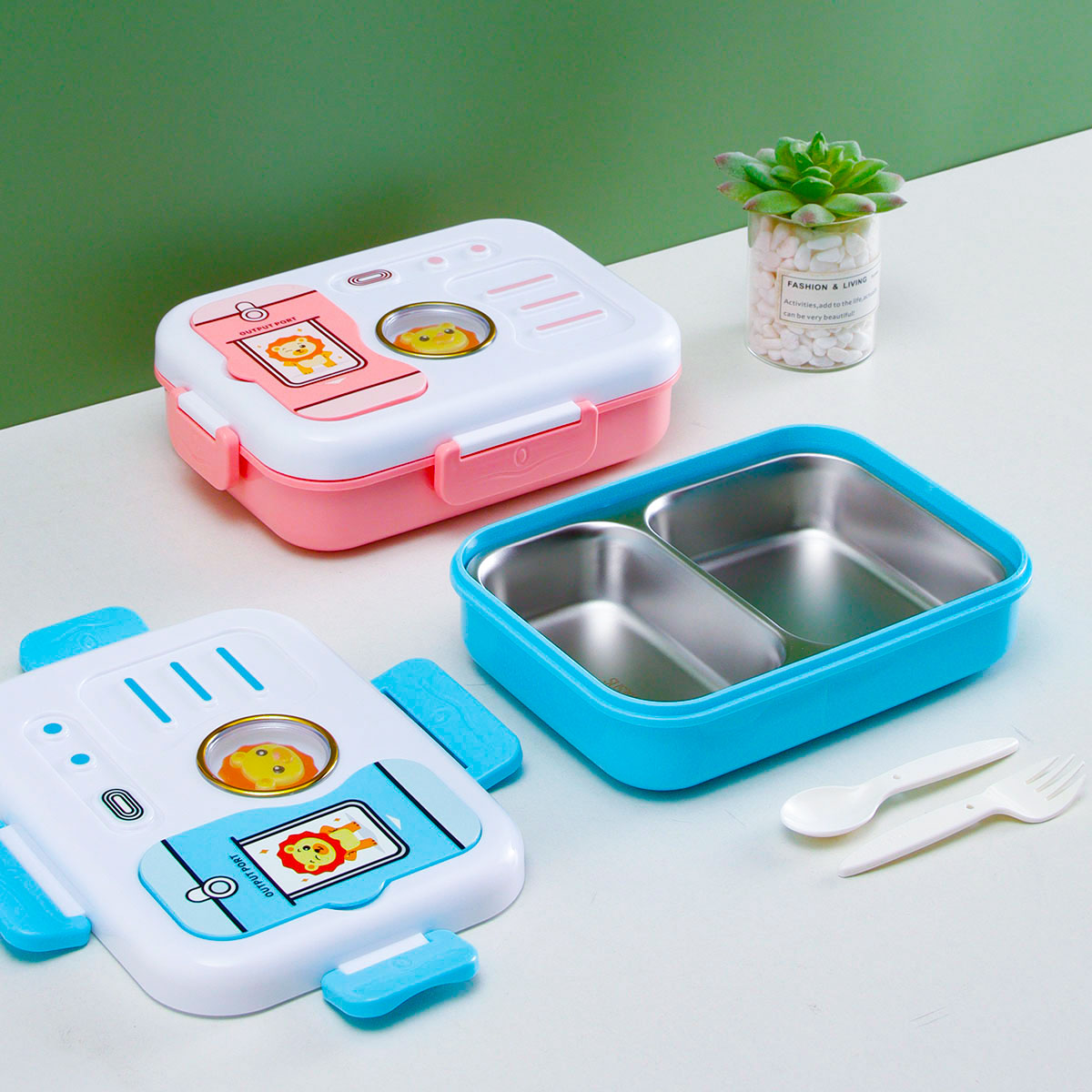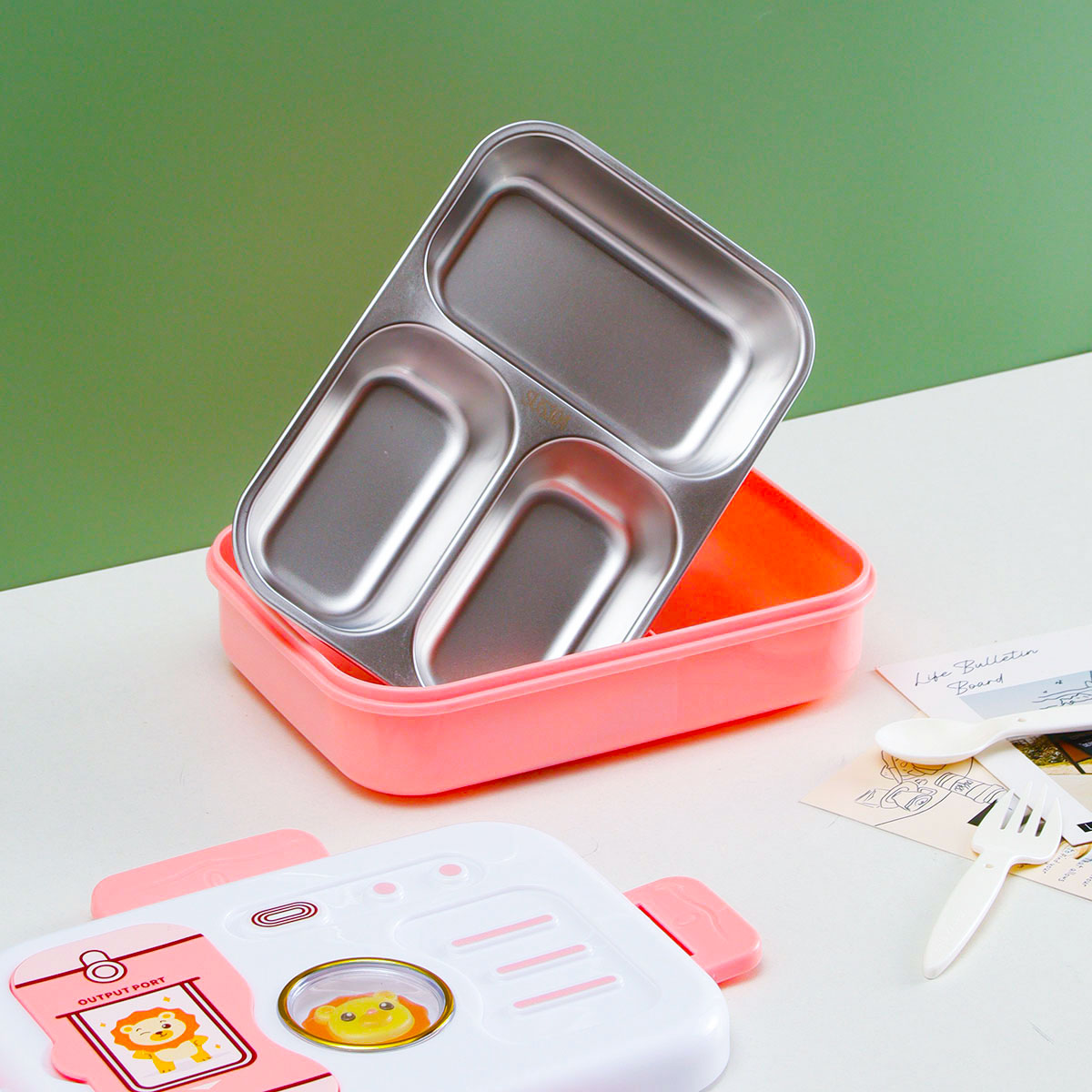 照相機(jī)二格/三格不銹鋼飯盒(塑料叉匙)
