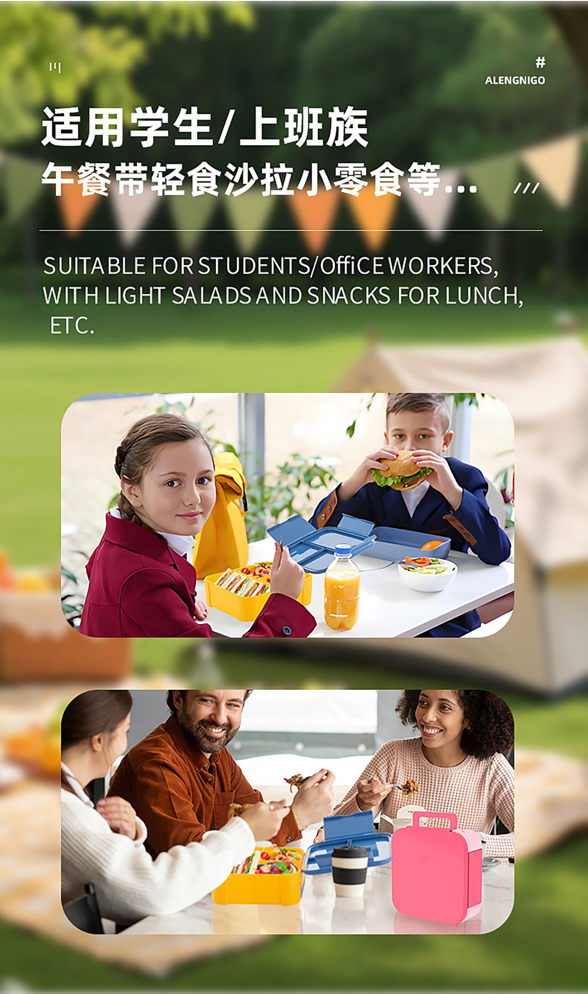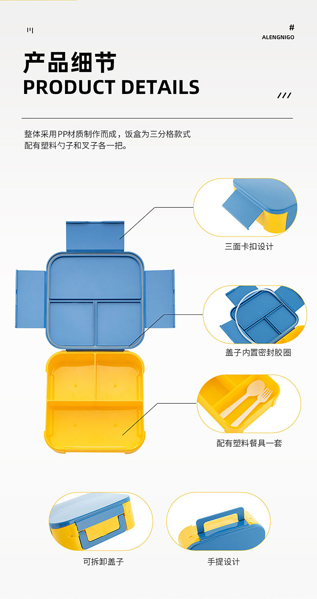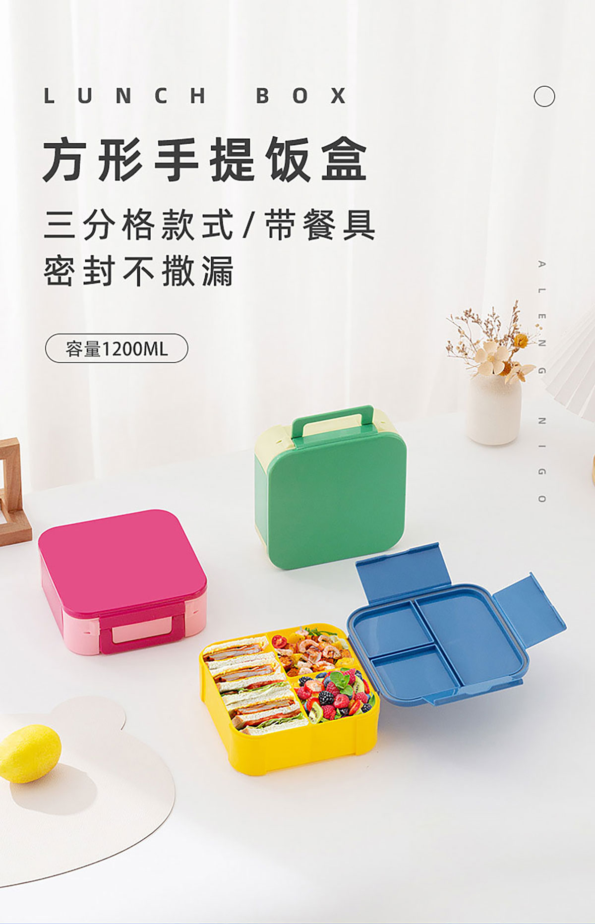 正方形手提翻蓋飯盒