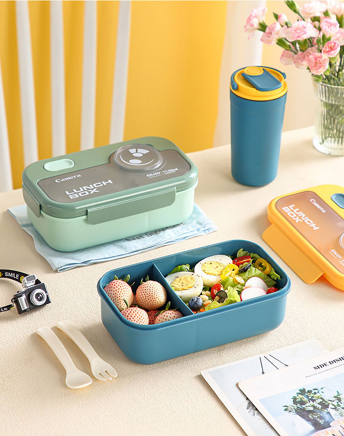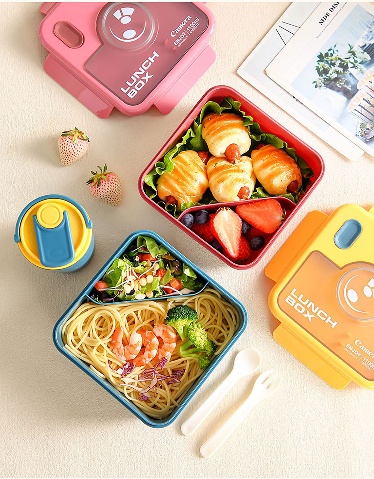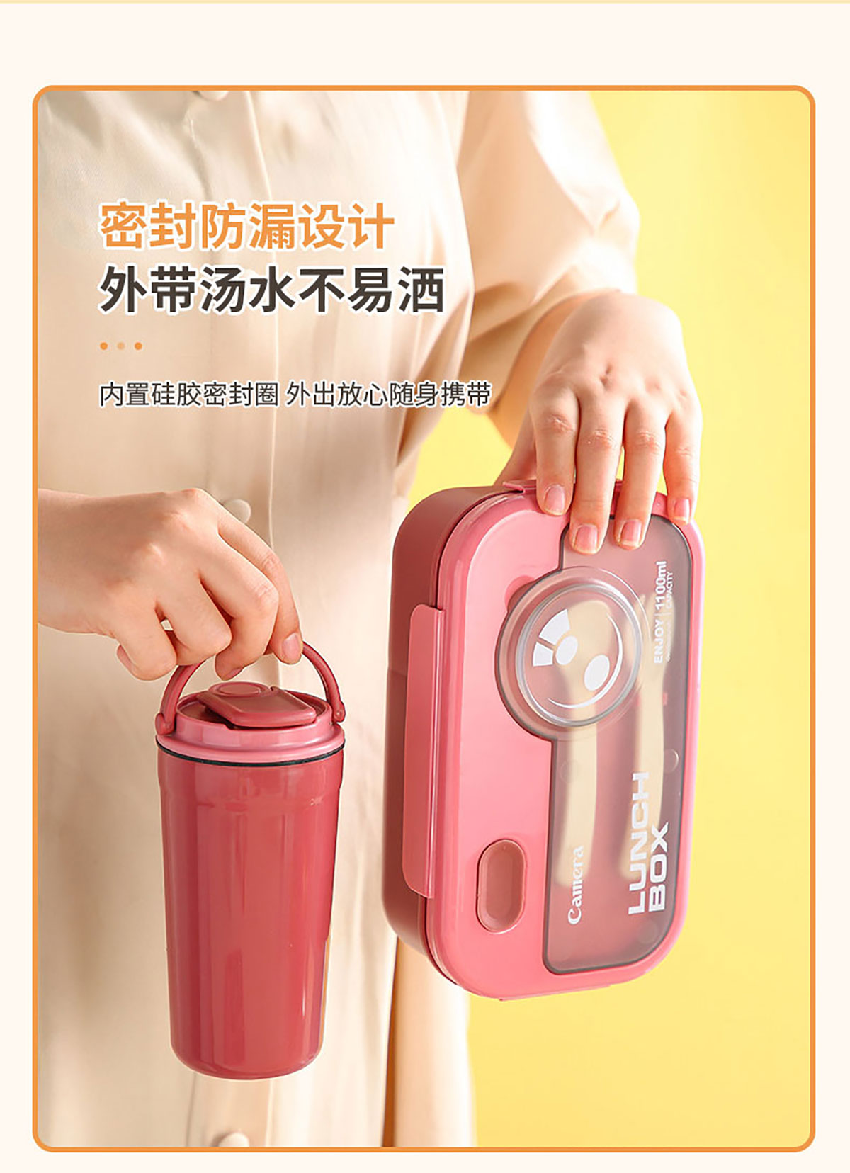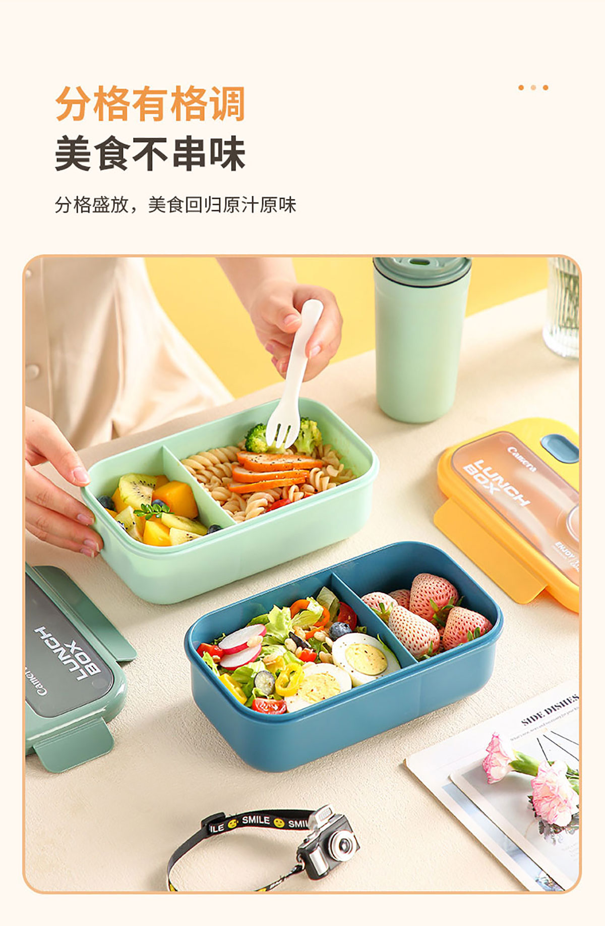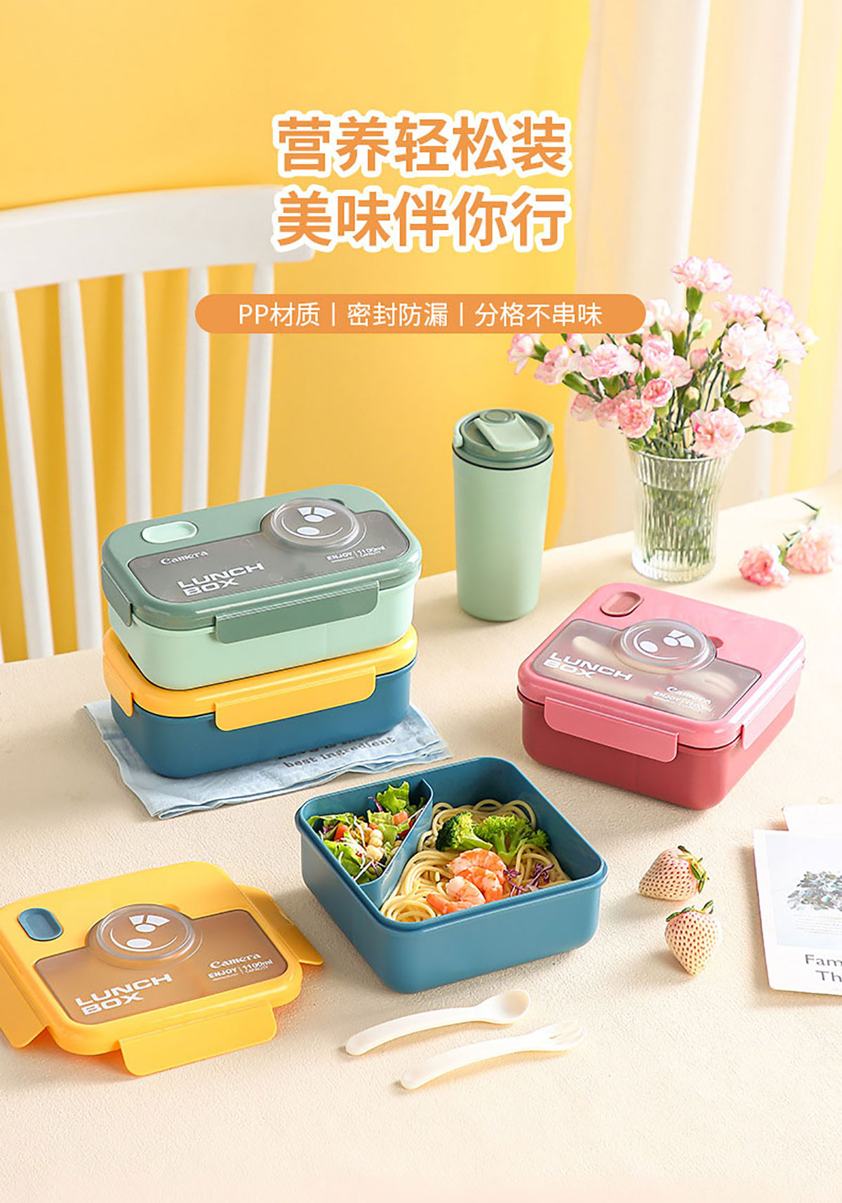 莫蘭迪長(zhǎng)方1100ml/正方1000ml相機(jī)飯盒(配叉+勺)