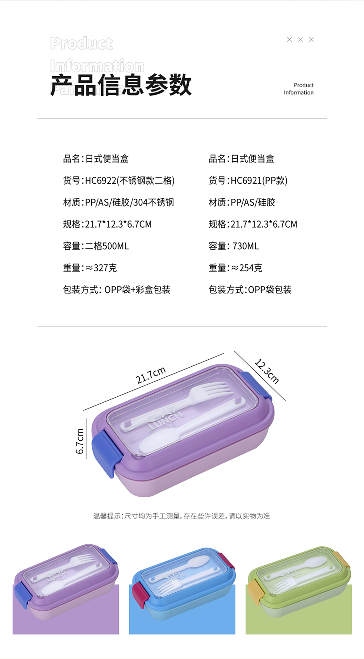 Size: SWY-HC6921(PP款二格):217*123*67mm/730ml