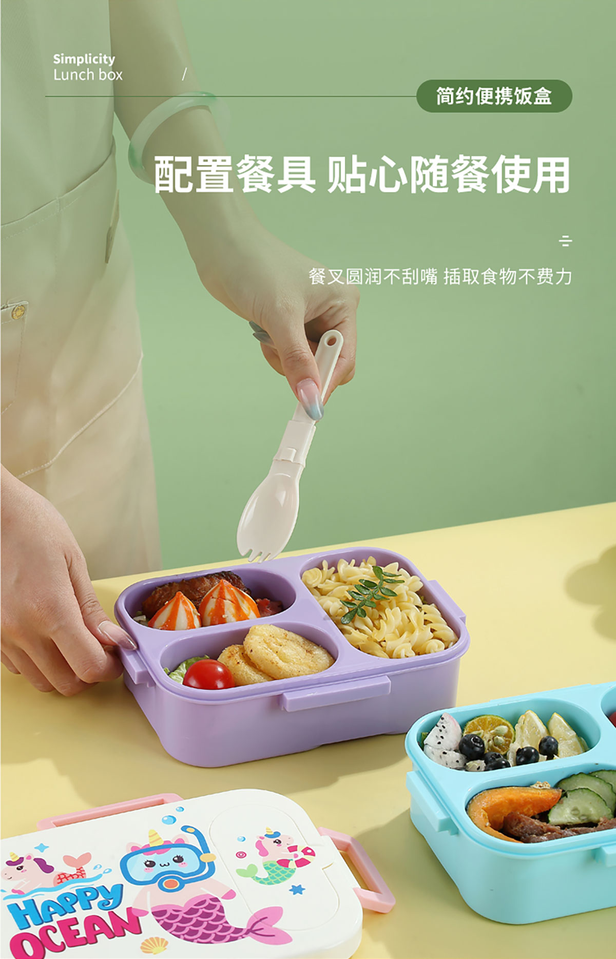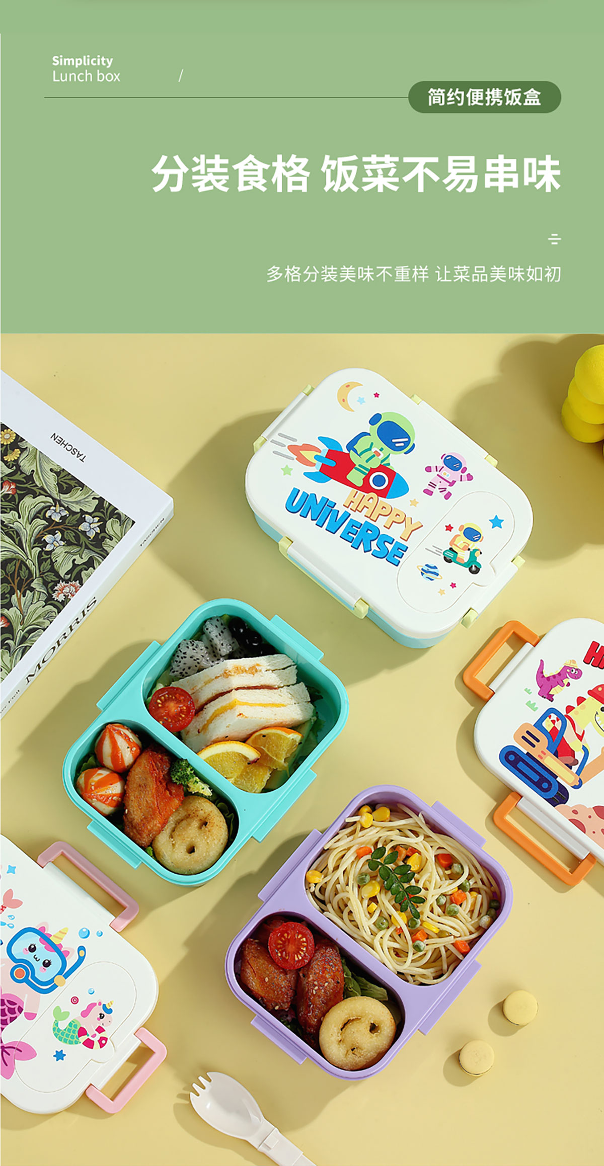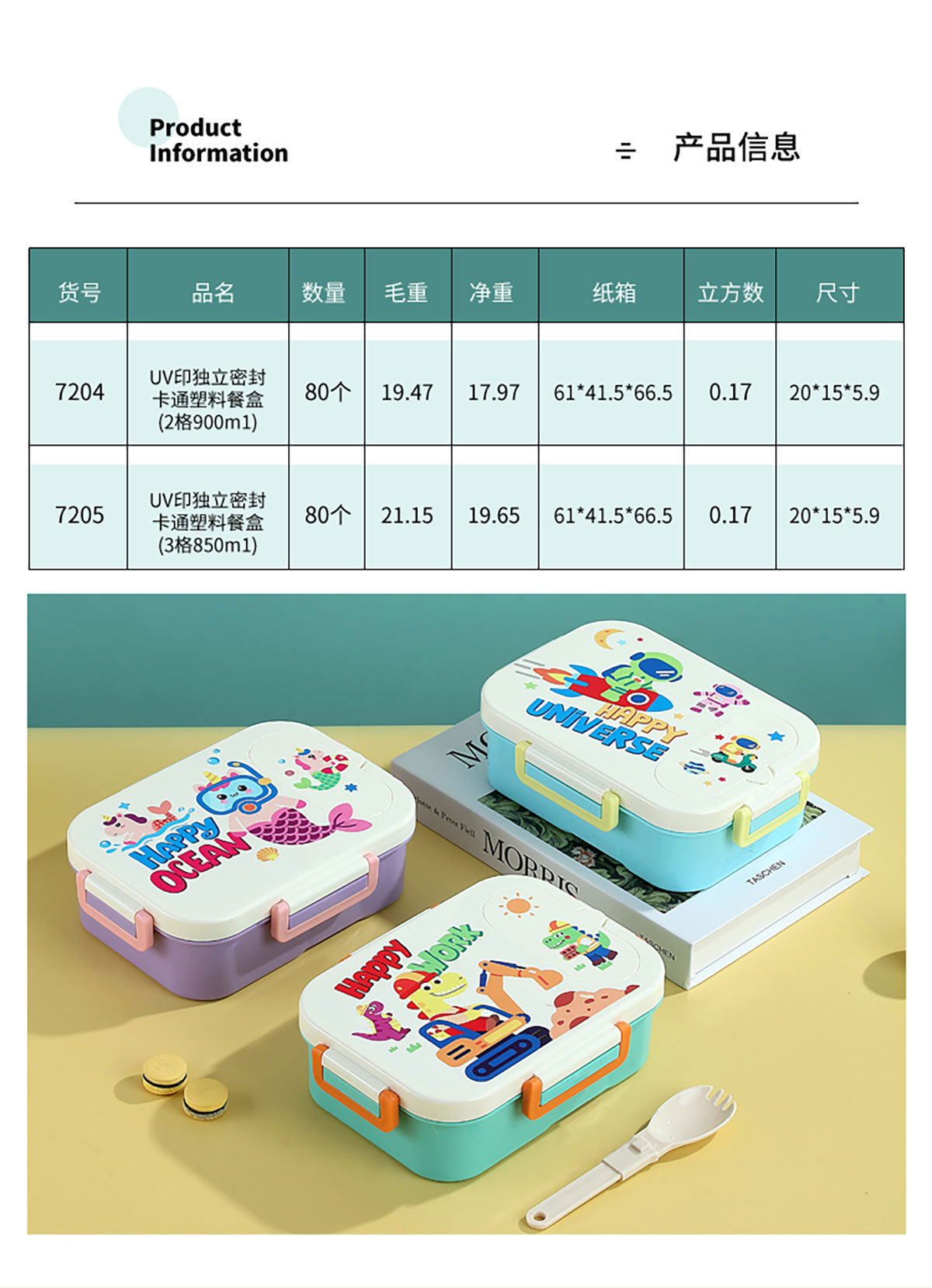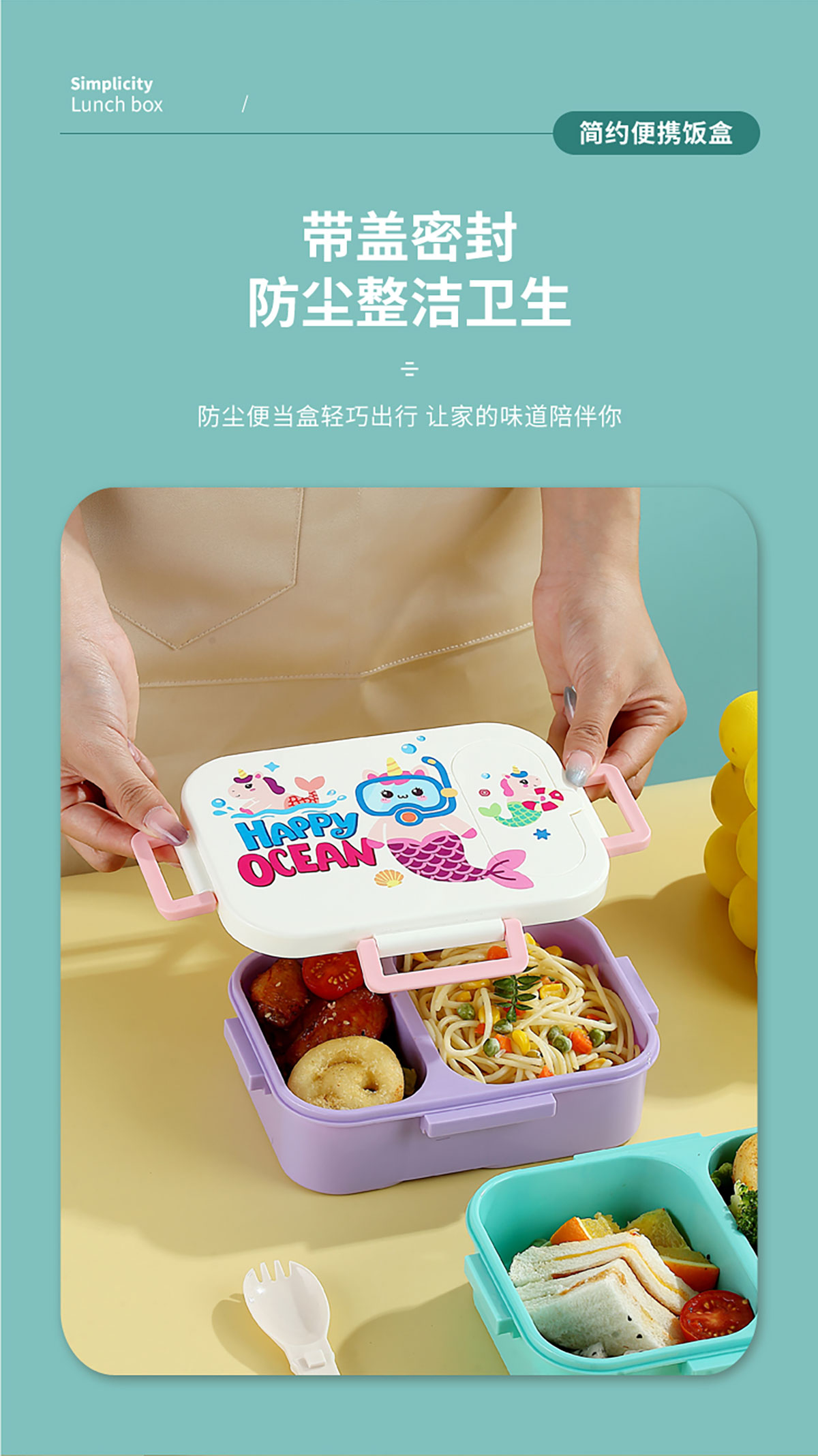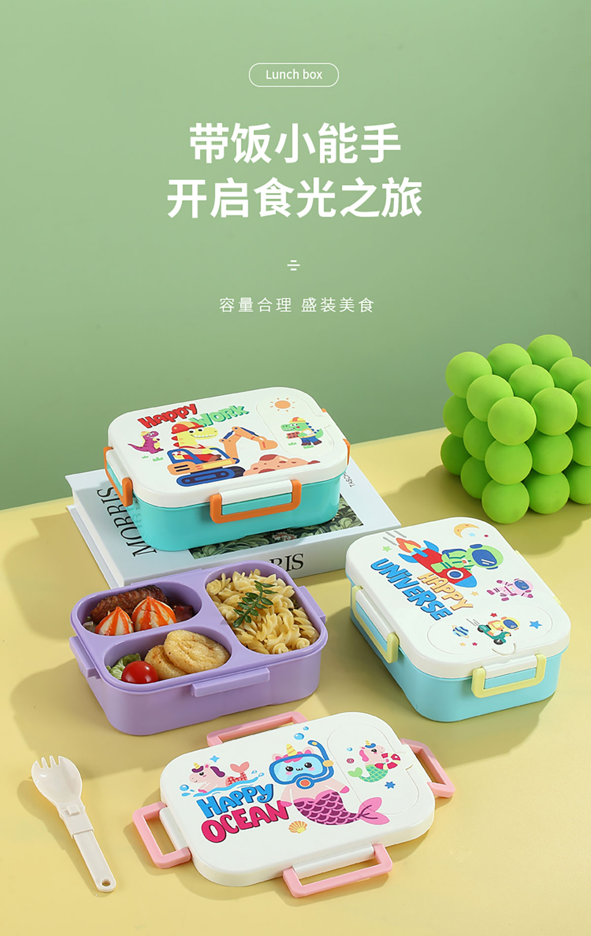 UV印獨(dú)立密封卡通塑料餐盒(2格900ml/3格850ml)