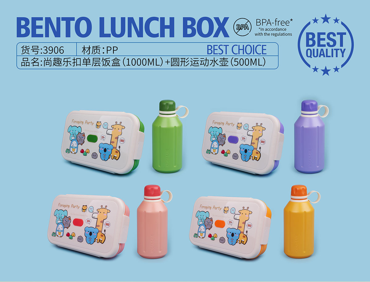 尚趣樂扣單層飯盒(1000ml)+圓形運動水壺(500ml)