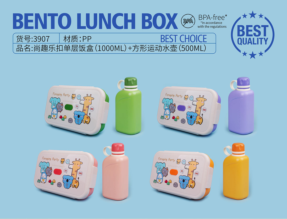 尚趣樂扣單層飯盒(1000ml)+方形運(yùn)動水壺(500ml)