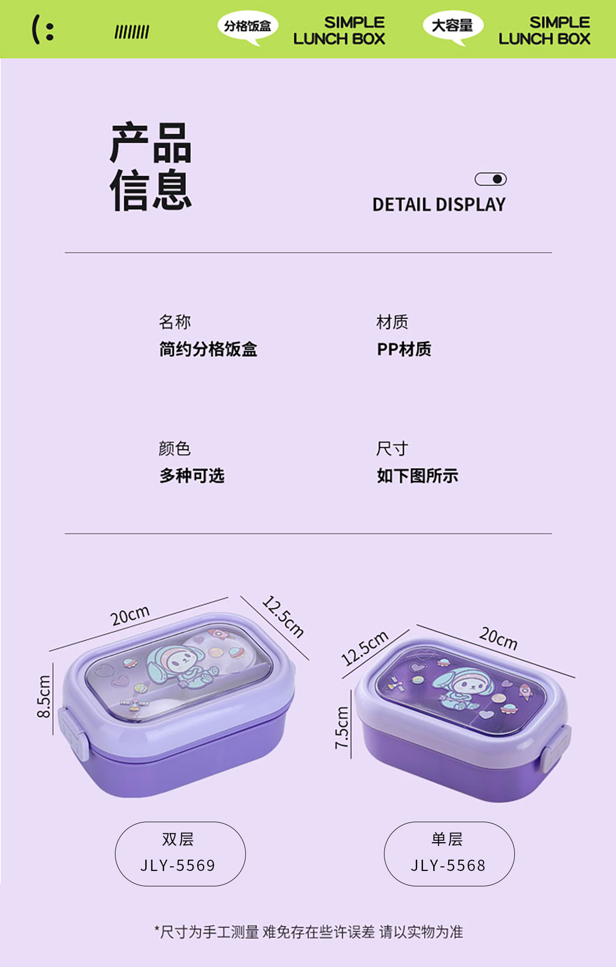 Size: JLY-5568(單層):200*120*80mm
